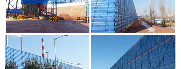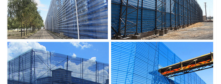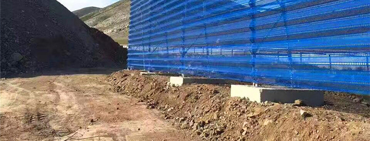 雙峰防風(fēng)抑塵網(wǎng)是利用空氣動力學(xué)原理,按照實(shí)施現(xiàn)場環(huán)境風(fēng)洞實(shí)驗(yàn)結(jié)果加工成一定幾何形狀、開孔率和不同孔形組合擋風(fēng)抑塵墻,使流通的空氣(強(qiáng)風(fēng))從外通過墻體時(shí),在墻體內(nèi)側(cè)形成上、下干擾的氣流以達(dá)到外側(cè)強(qiáng)風(fēng),內(nèi)側(cè)弱風(fēng),外側(cè)小風(fēng),內(nèi)側(cè)無風(fēng)的效果,從而防止粉塵的飛揚(yáng)。