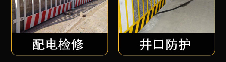 基坑臨邊防護欄、文明施工材料堆放區(qū)域隔離、樓層臨邊防護、電梯井防護等。